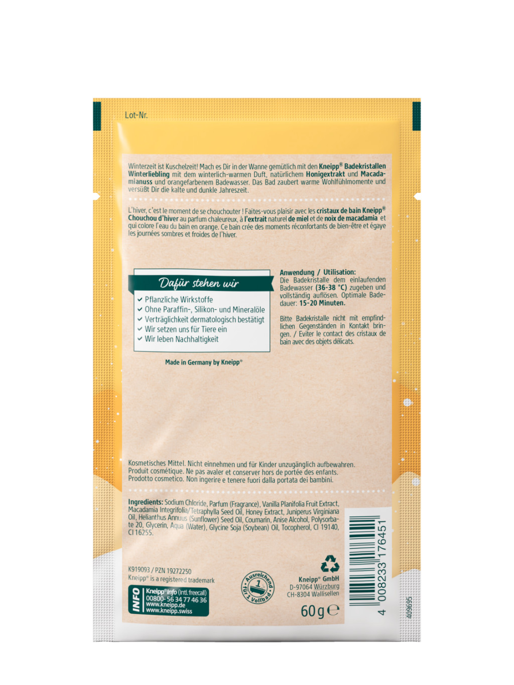 A tél az ölelkezések ideje! Élvezze a Kneipp Téli kedvenc fürdőkristállyal a meleg, téli illatot. Természetes mézkivonattal,